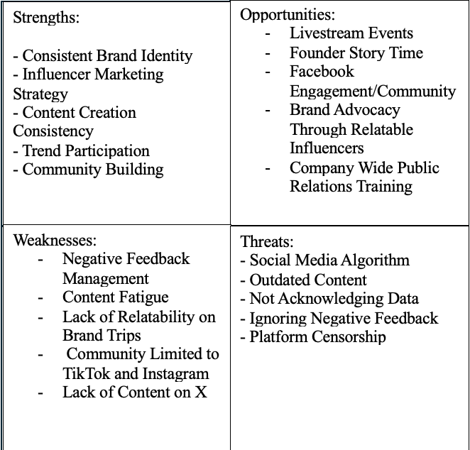 Lack of Content on X (formerly known as Twitter): When you search for Tarte on X, you are first brought to an abandoned page with almost 900,000 followers, with the last post being in 2020. I believe this is a weakness because there are huge makeup and skincare communities on X. Utilizing this platform would be a great way to tap into those potential customers.